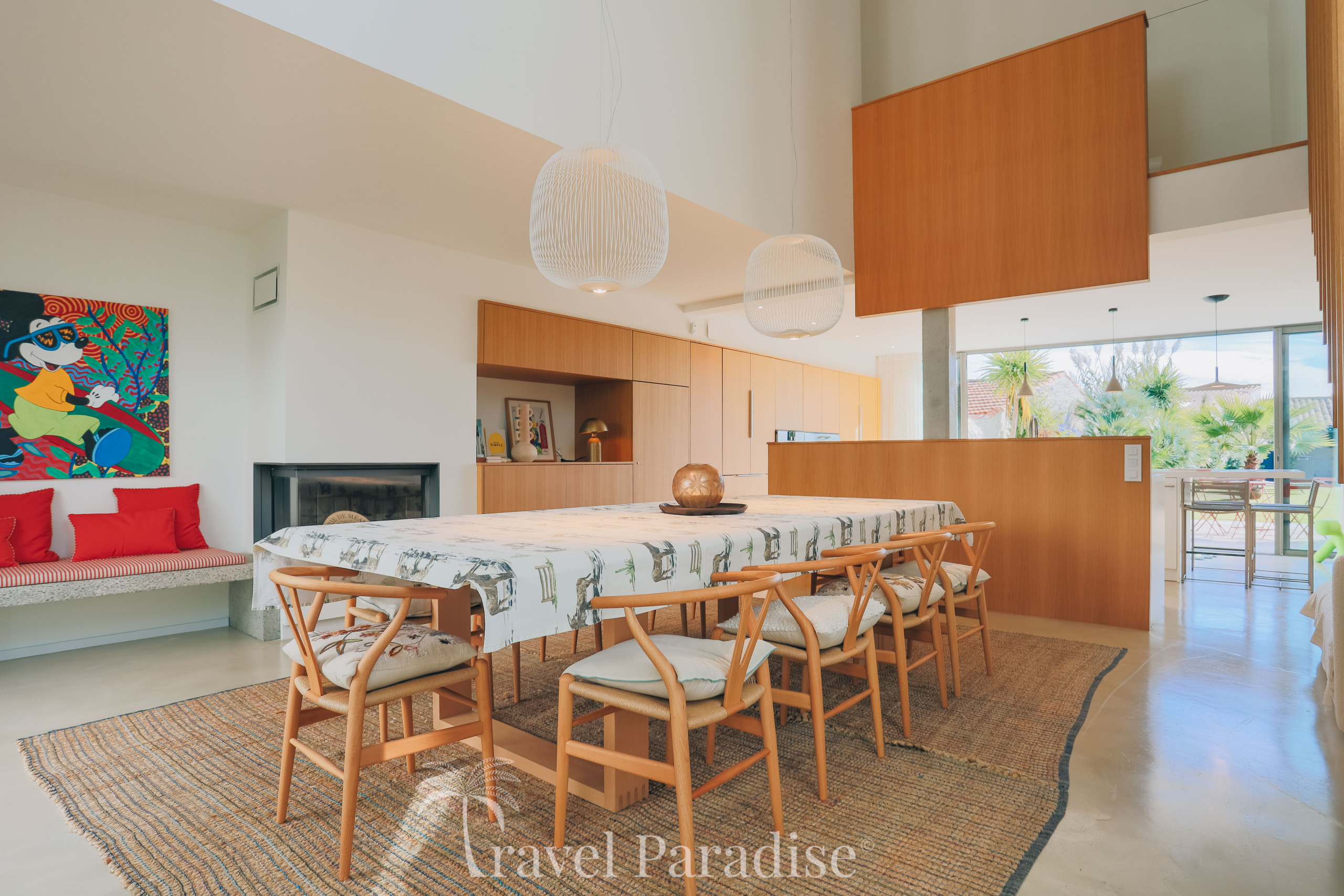 With its 7 spacious bedrooms, the Saint-Exupéry villa can comfortably accommodate up to 12 people, ideal for holidays with both family and friends. The interior design combines artistic touches and modernity to create an atmosphere that is both warm and refined. You will find a spacious living room, a large and friendly dining room, as well as a fully equipped open-plan kitchen to satisfy all your culinary desires.
