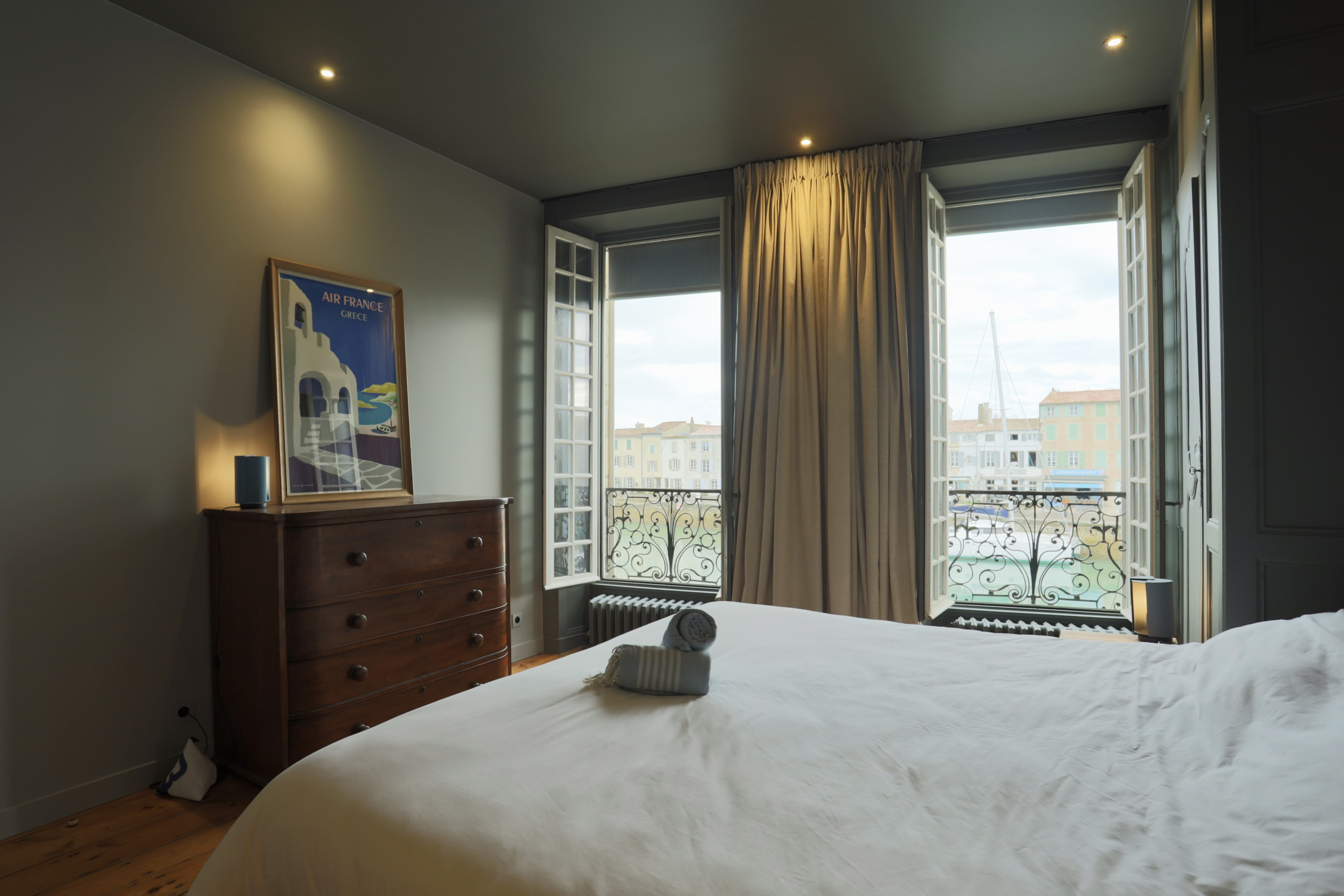 This shipowner's house, on three floors, has 6 bedrooms, able to accommodate up to 11 travelers, 5 bathrooms, including one completely decorated with shells by the famous architect Jacques Garcia, a fully equipped kitchen, and 2 living rooms, one of which, on the top floor, offers an unobstructed view of the port and the ocean.