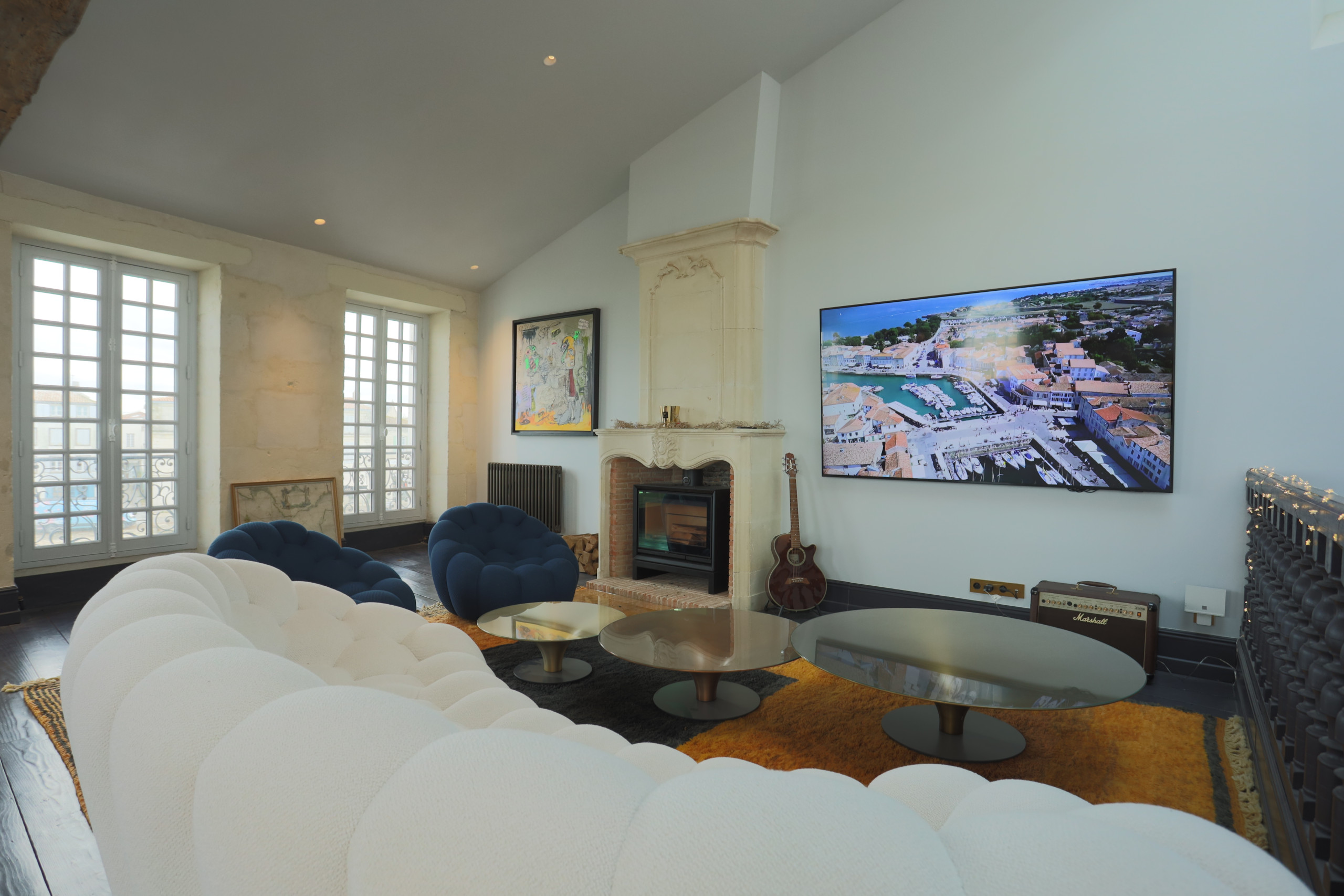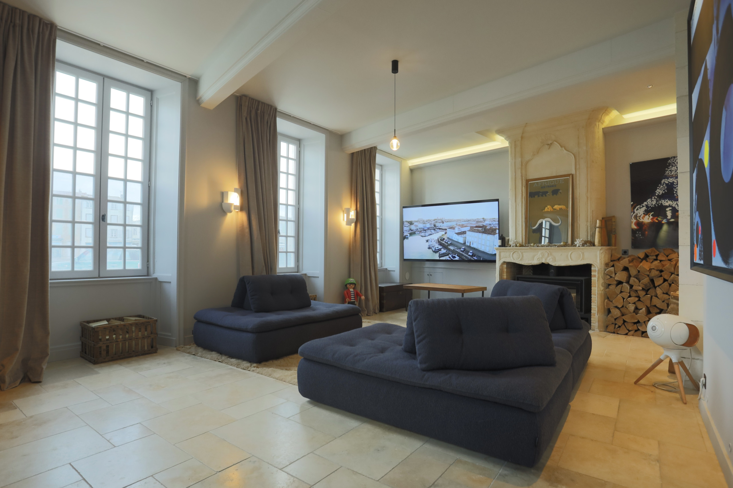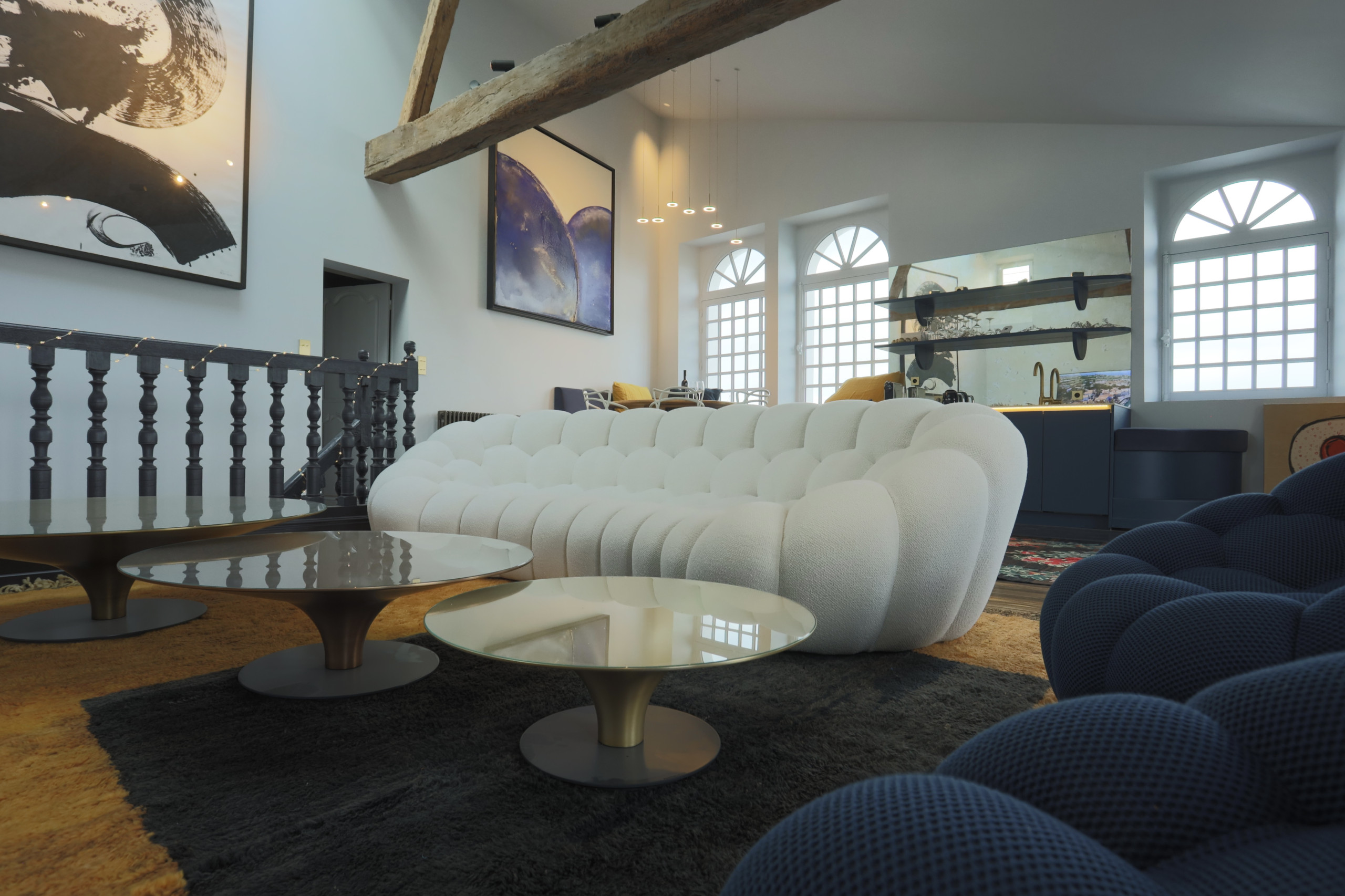 From the entrance, the Villa du Baron captivates with its luminous and refined spaces, where the charm of the old blends harmoniously with modern comfort. The vast living room, bathed in light thanks to its large openings, opens onto the inner courtyard and the spa.