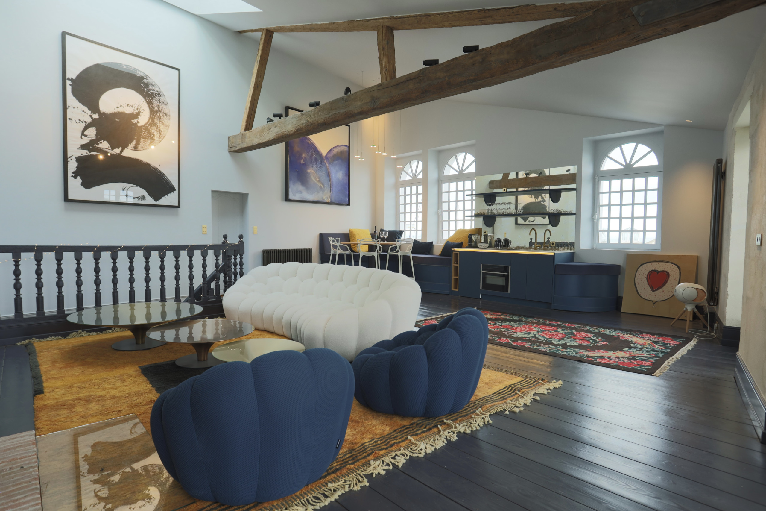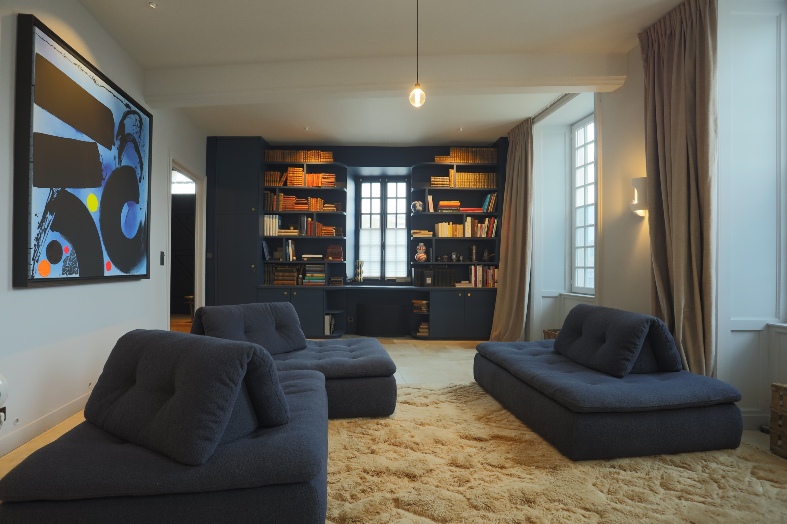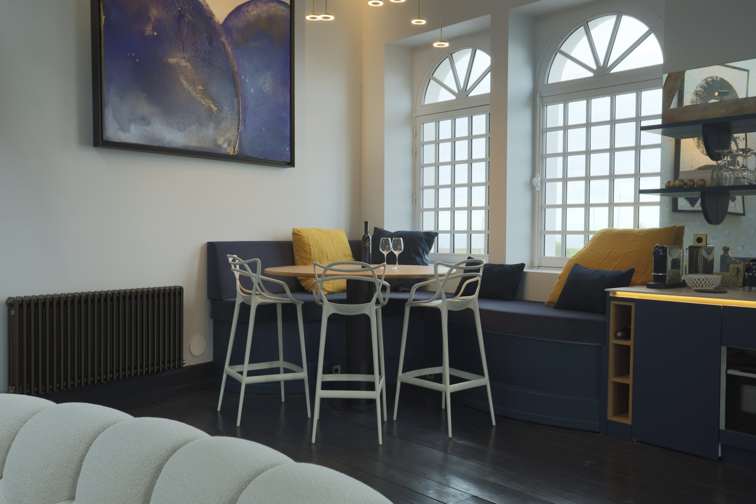 From the entrance, the Villa du Baron captivates with its luminous and refined spaces, where the charm of the old blends harmoniously with modern comfort. The vast living room, bathed in light thanks to its large openings, opens onto the inner courtyard and the spa.