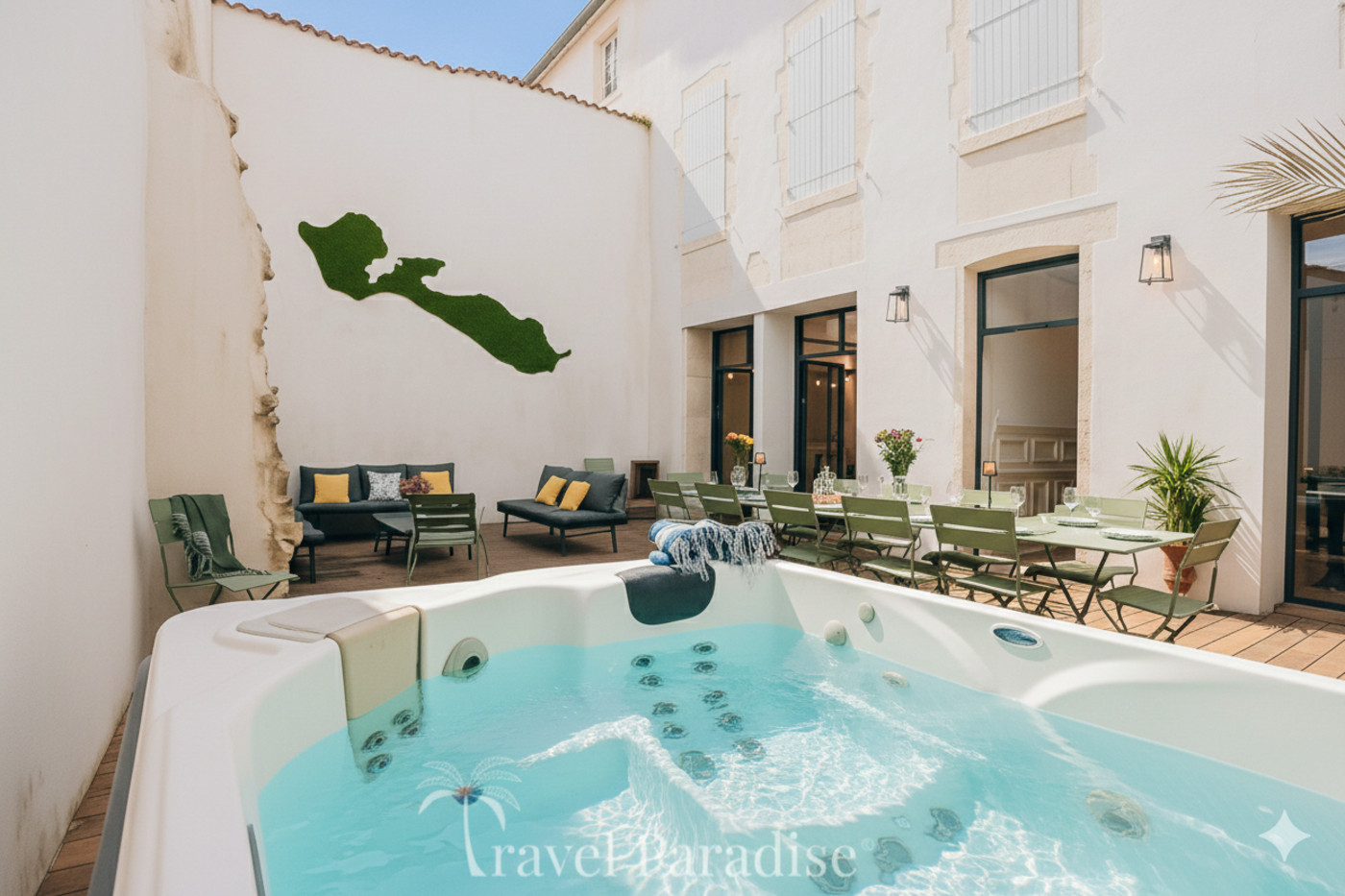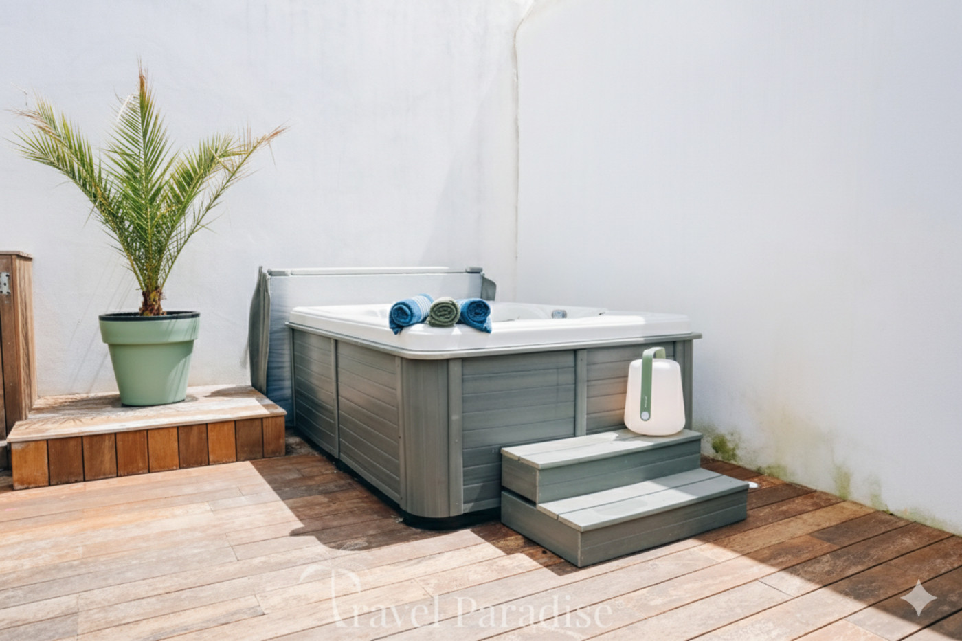 Outside, a courtyard without overlooking neighbours houses a spa, and a dining area with a plancha perfect for your summer evenings.