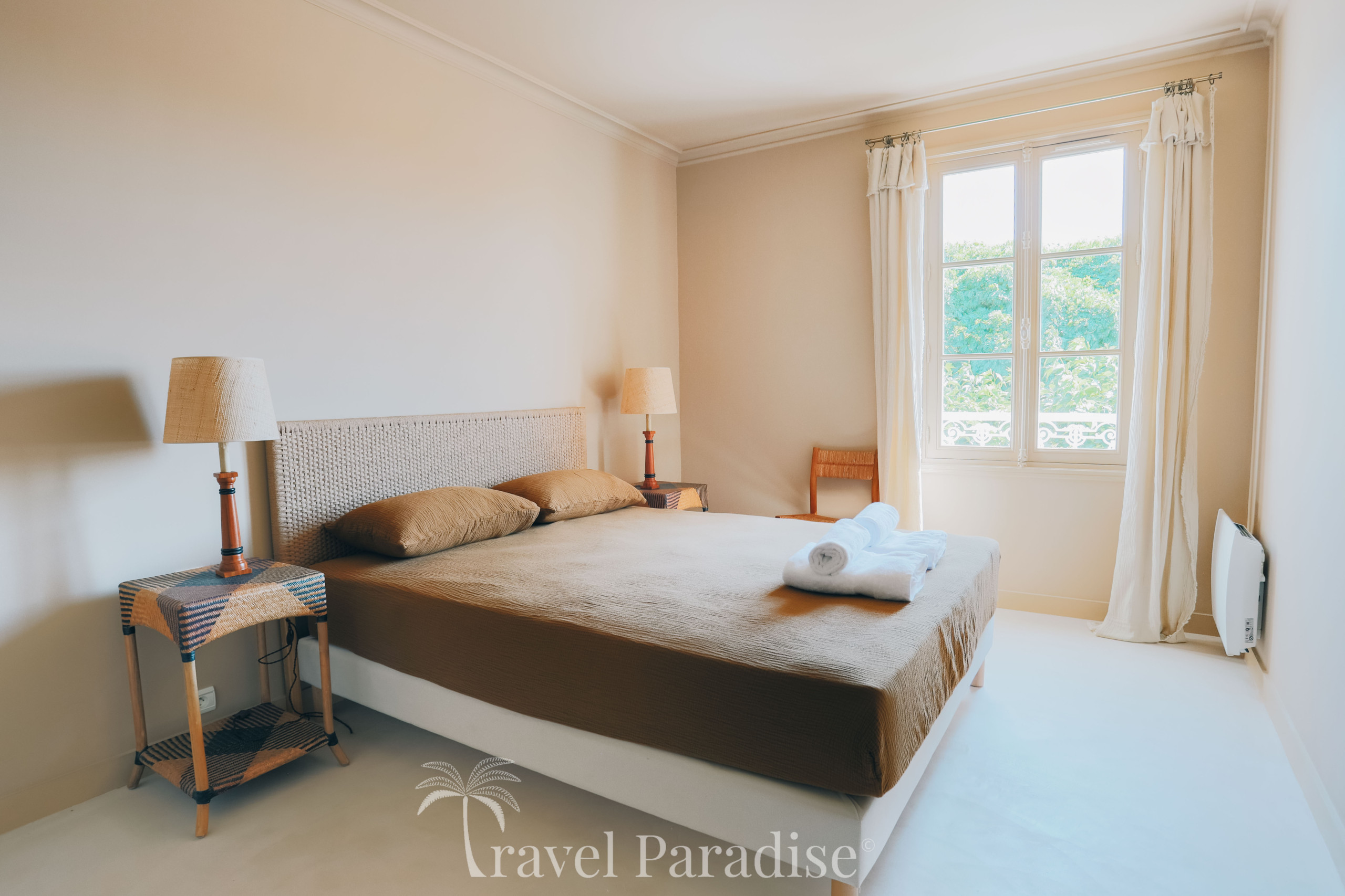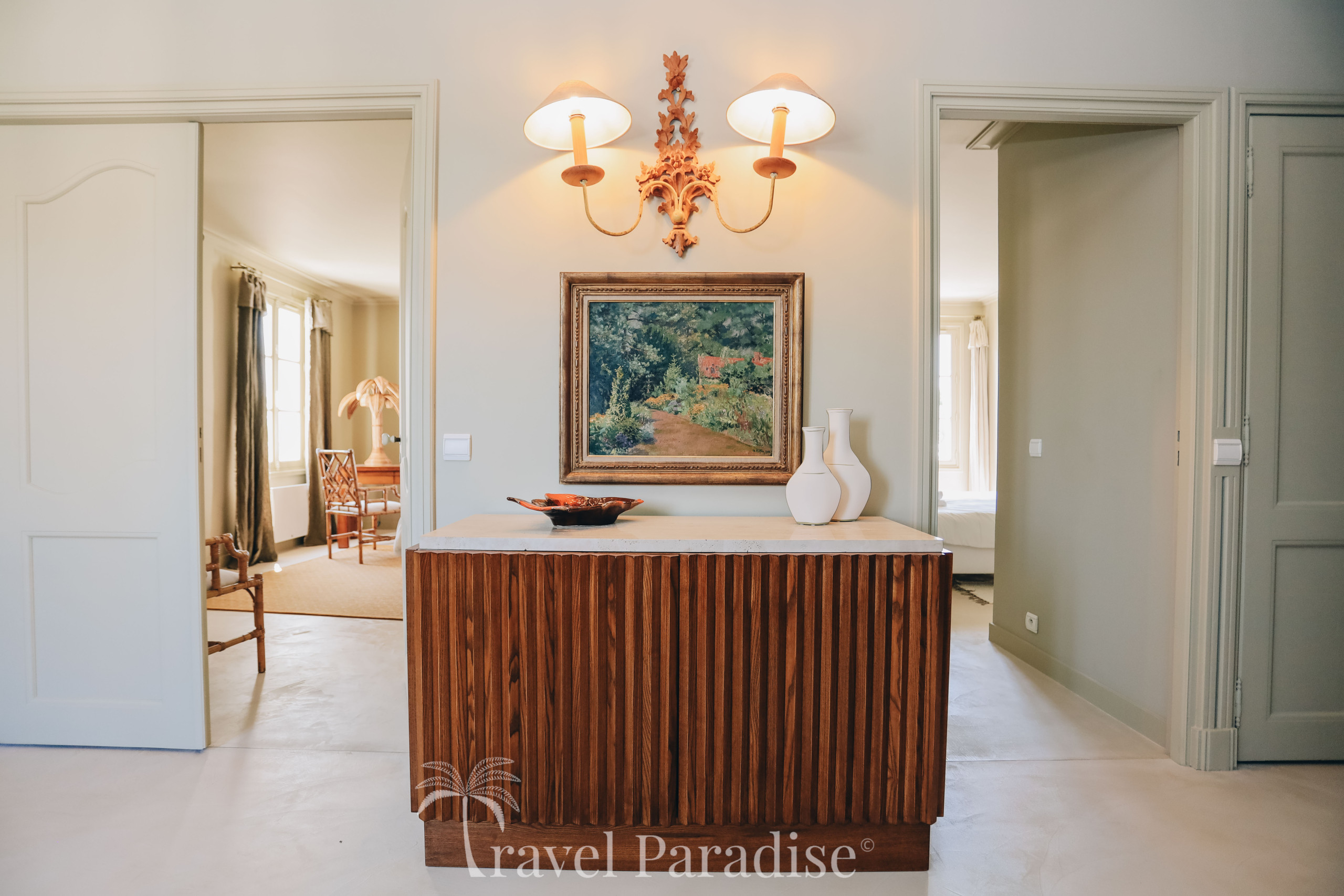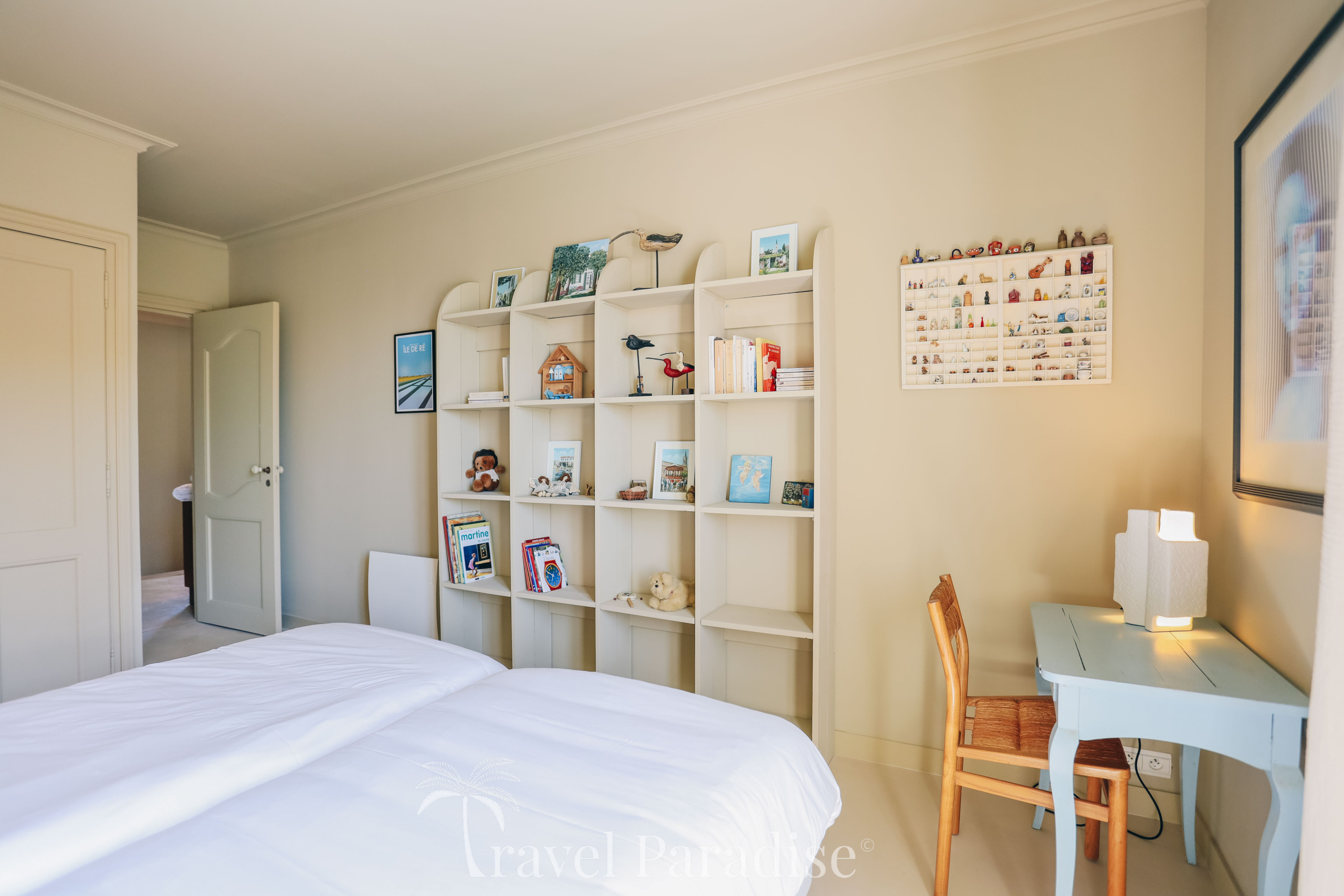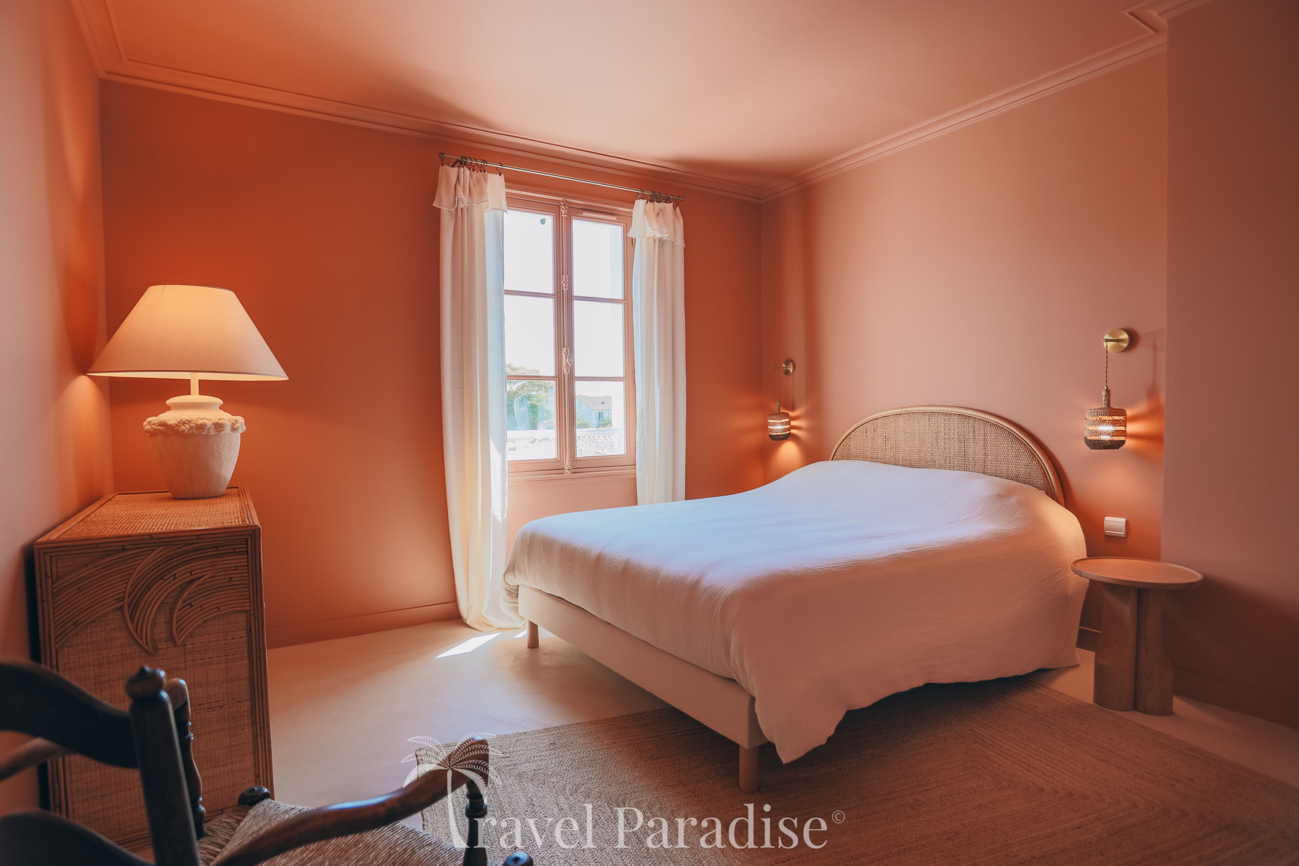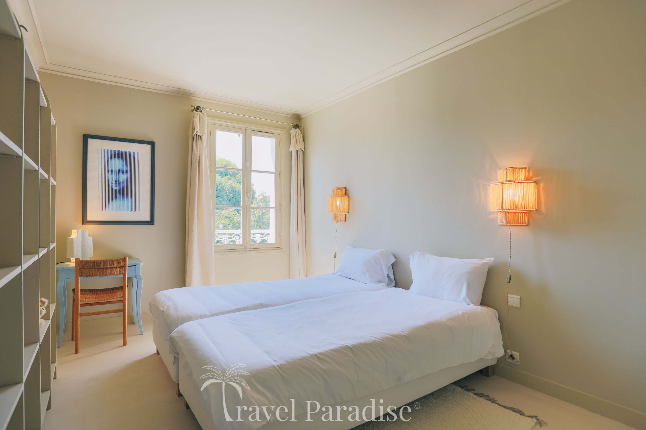 L’espace nuit se situe à l’étage et se compose de deux suites ainsi que de trois chambres partageant deux salles de bain/eau. Chaque chambre est décorée avec soin, dans les moindres détails, et personnalisée dans des teintes douces, créant une ambiance apaisante et élégante propice au repos.
