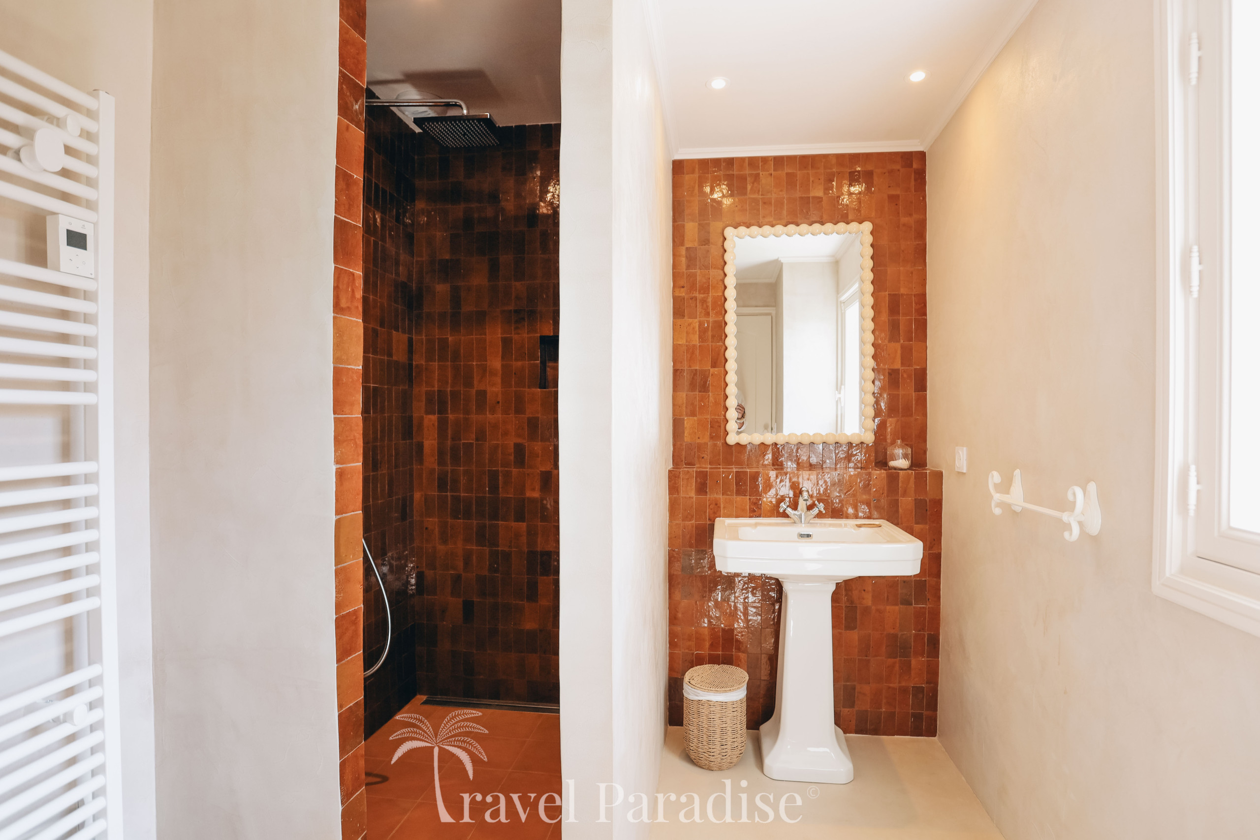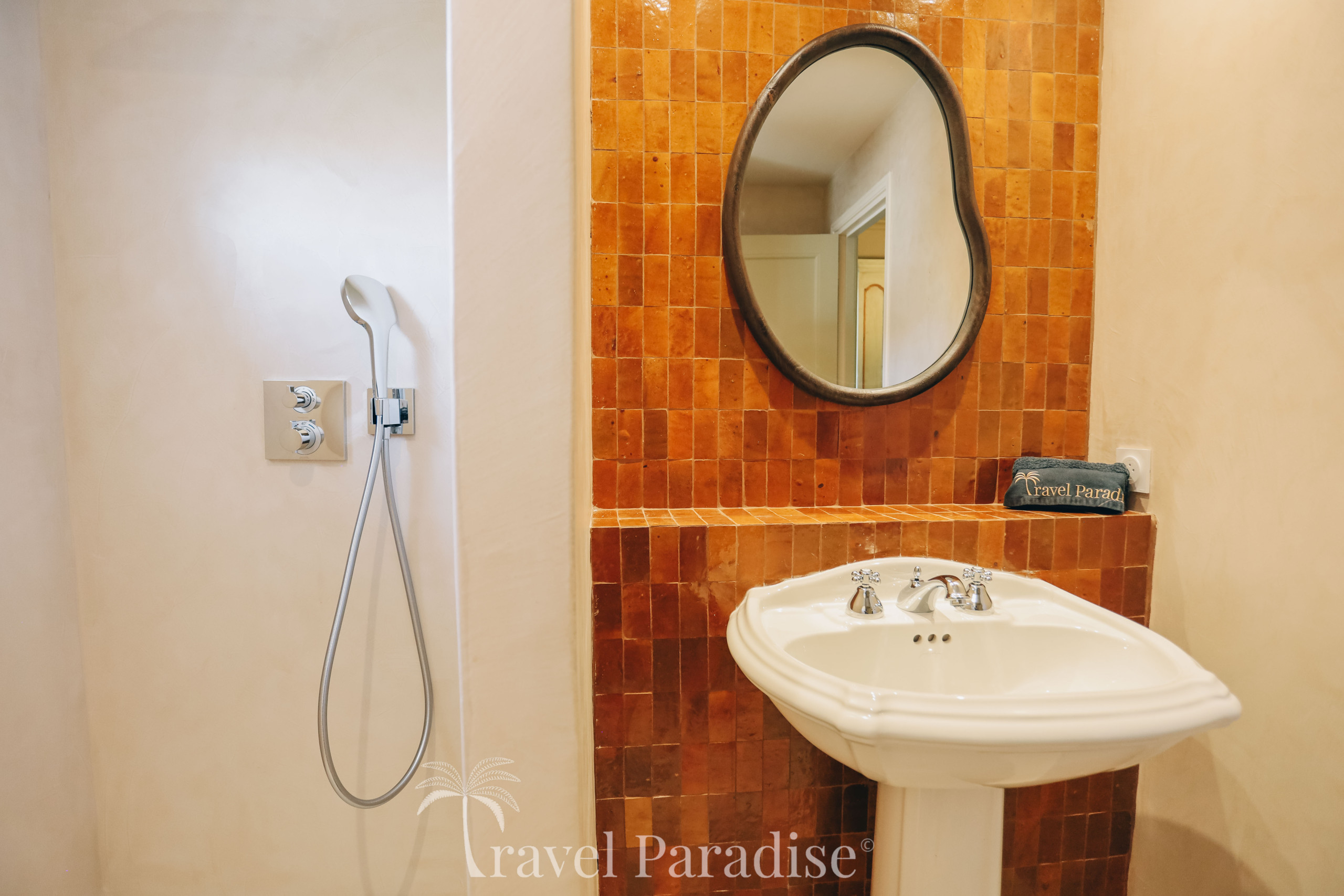 La maison propose 5 élégantes suites, chacune disposant de sa salle d’eau privative et de ses toilettes, garantissant à chacun son intimité.