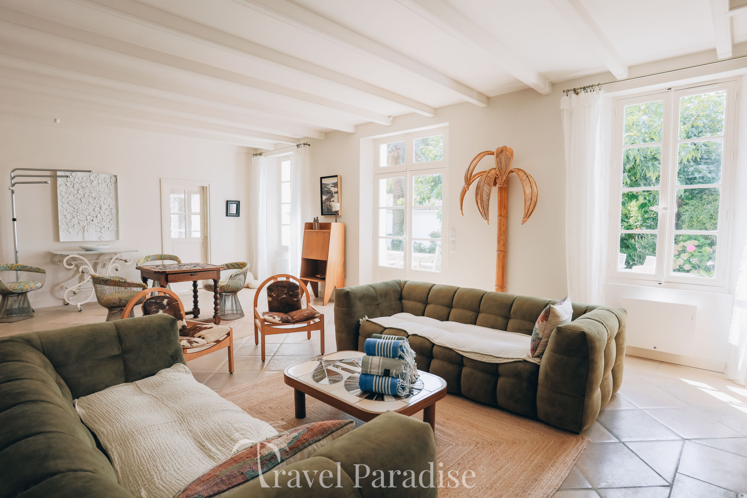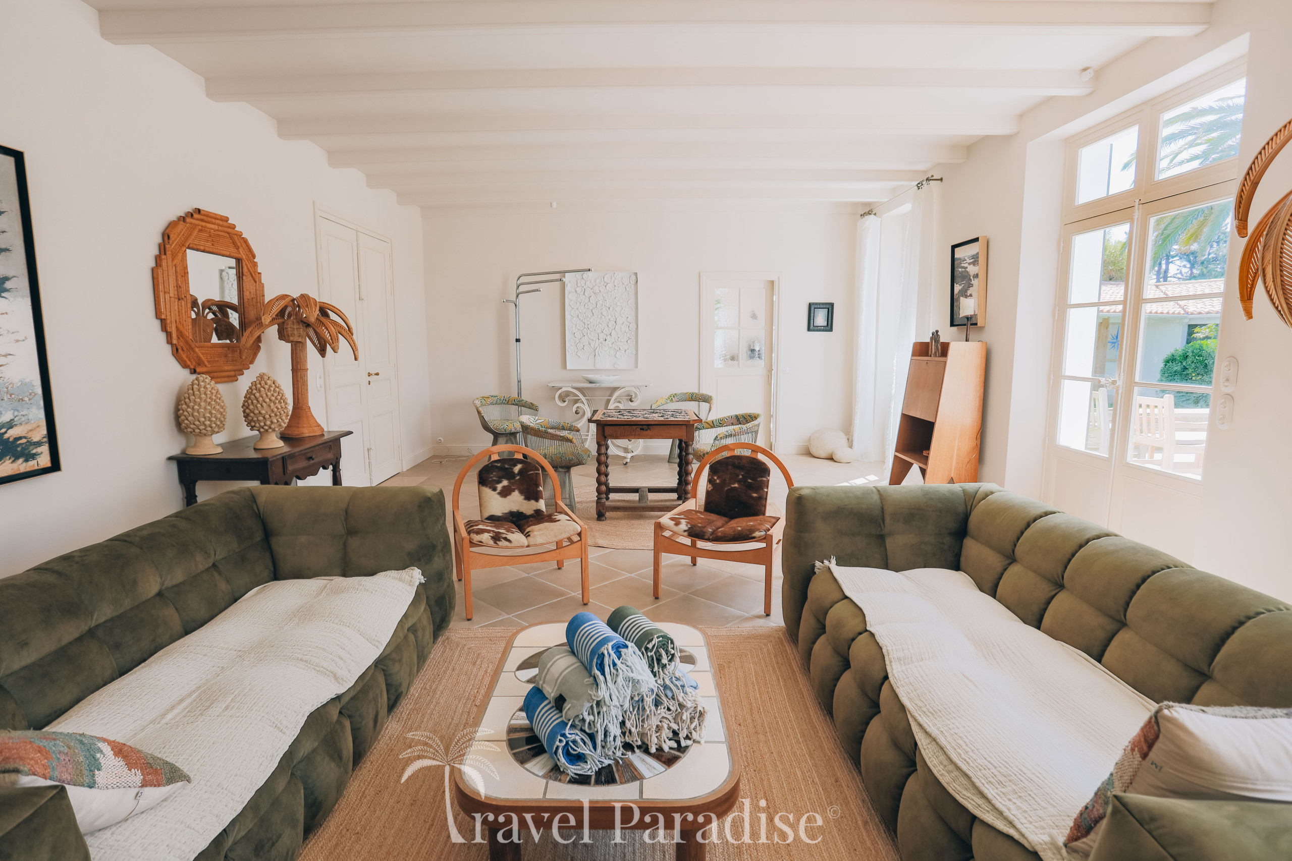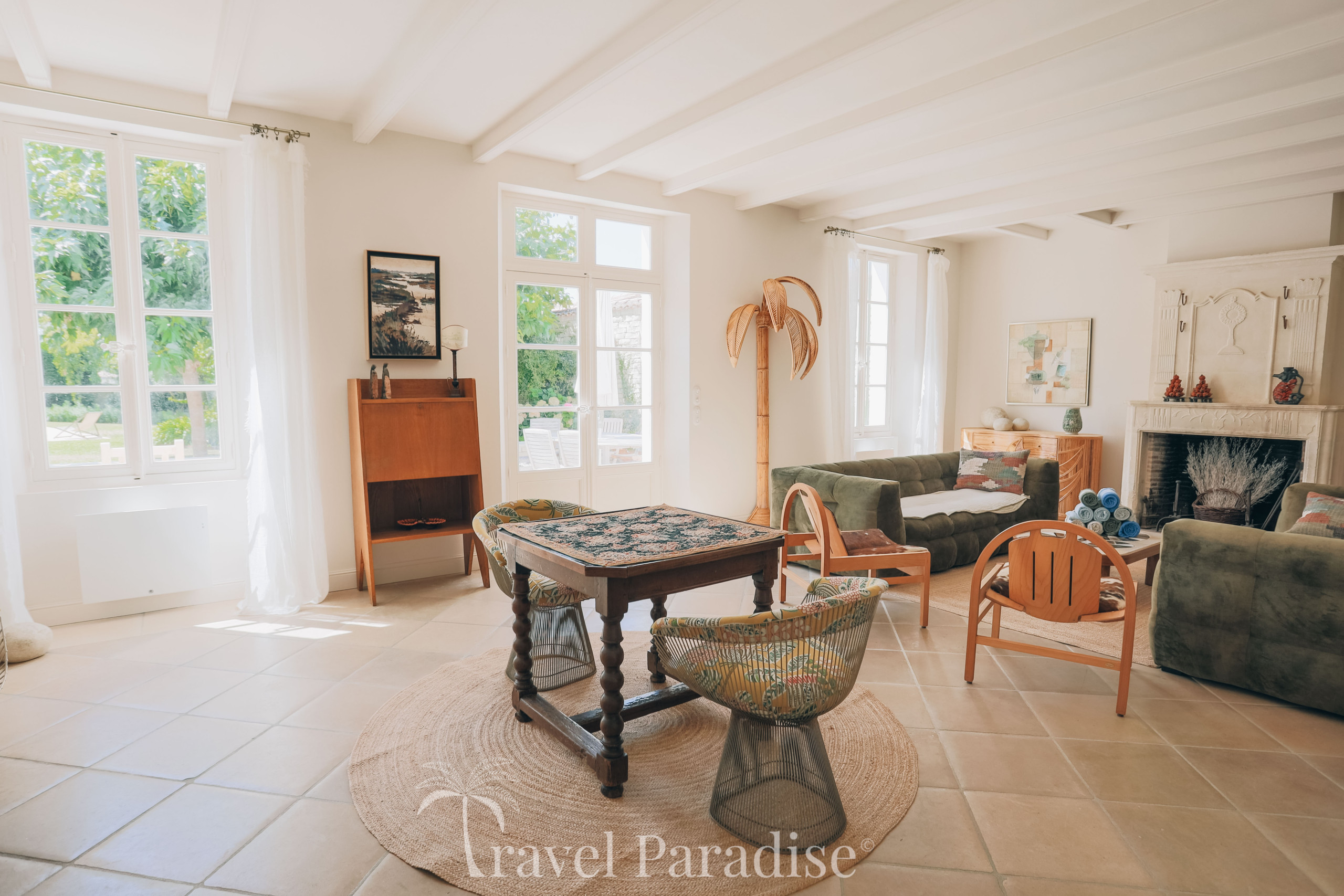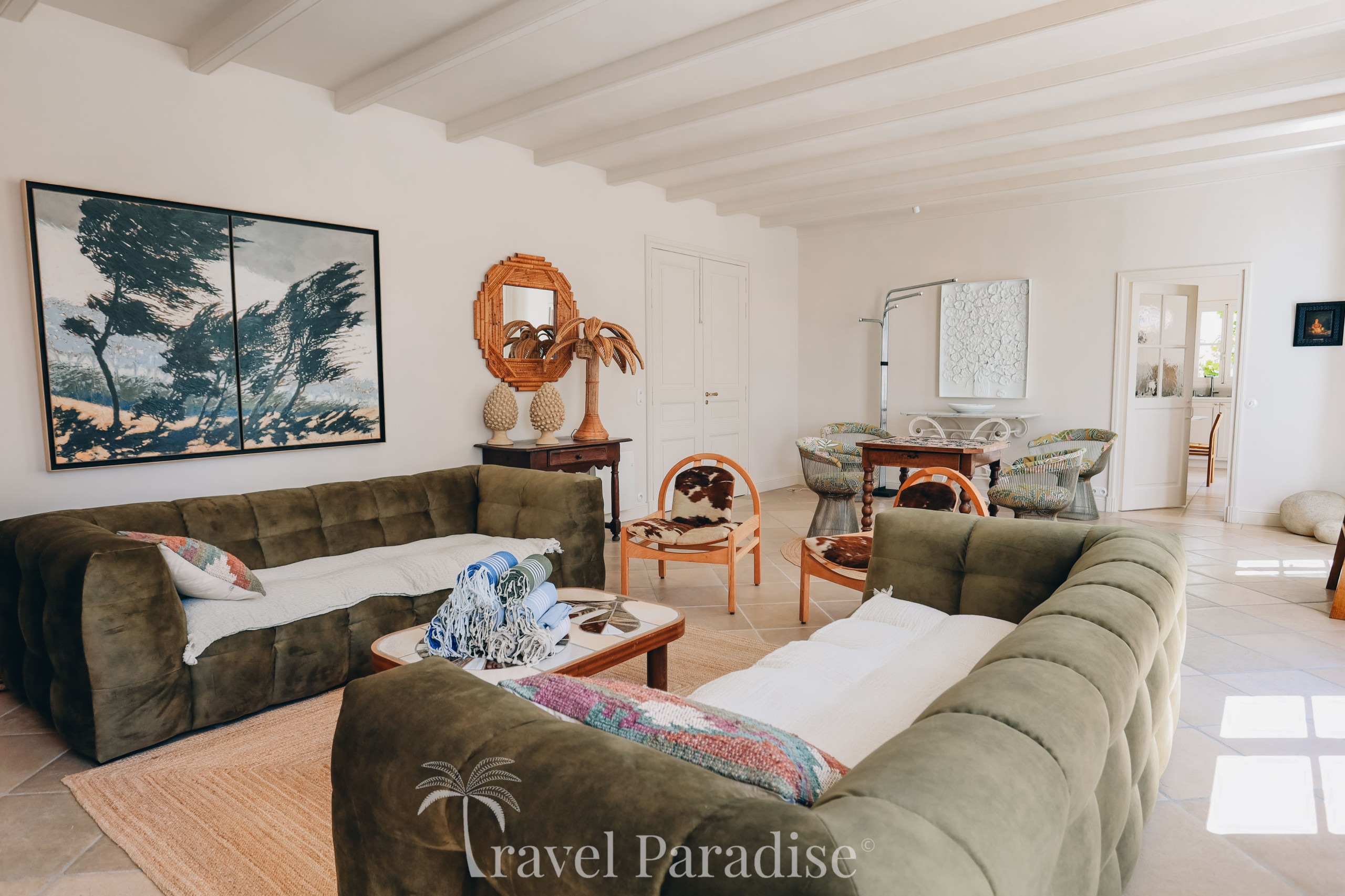 La villa s’ouvre sur un vaste jardin arboré, véritable écrin de verdure propice à la détente et aux instants de convivialité. À l’intérieur, vous découvrirez une décoration raffinée, ponctuée de pièces de mobilier design vintage qui confèrent à l’ensemble une atmosphère chaleureuse et unique.