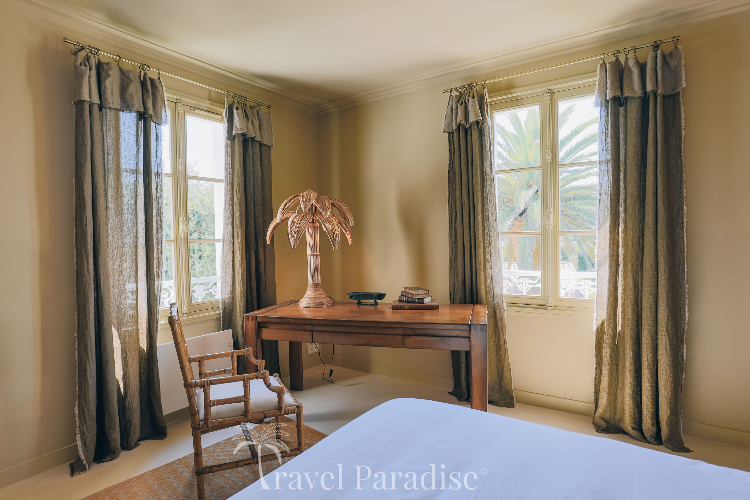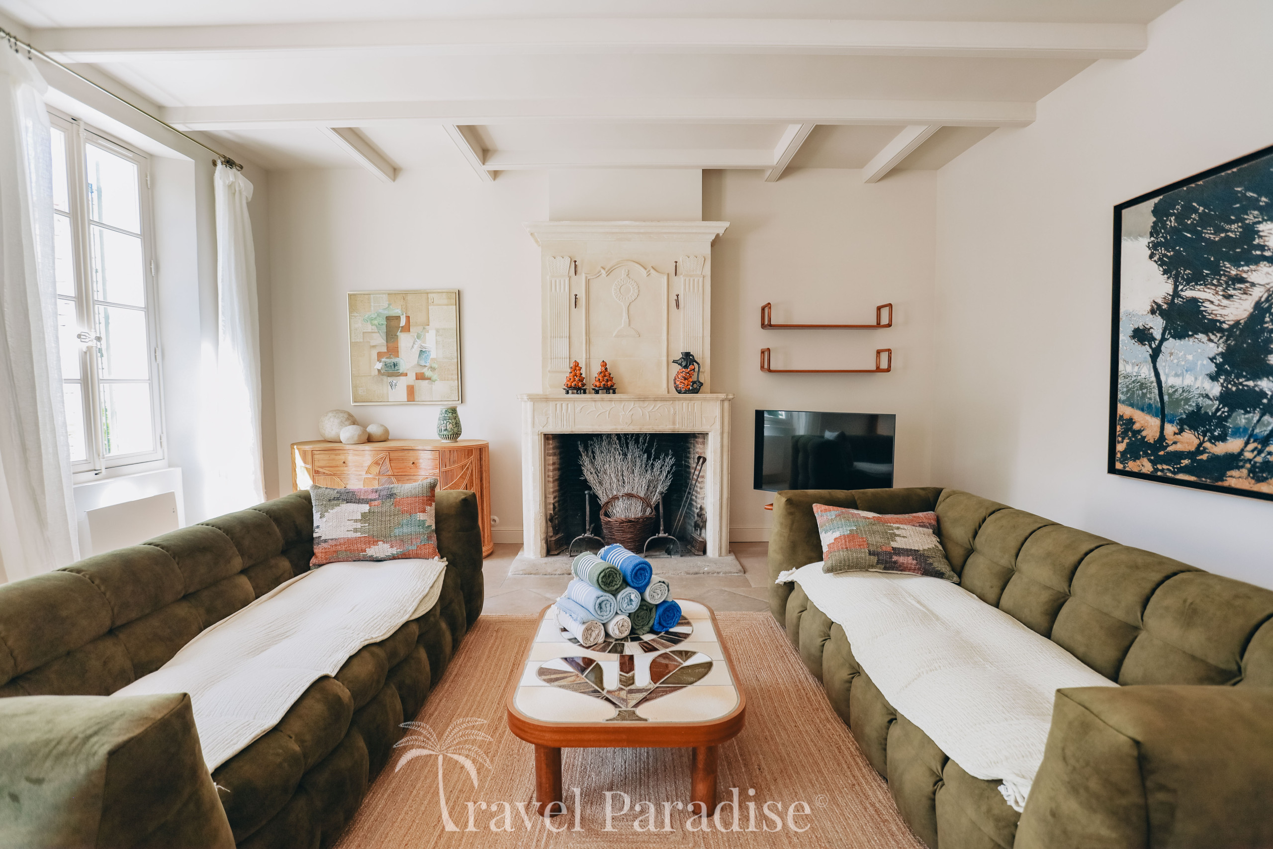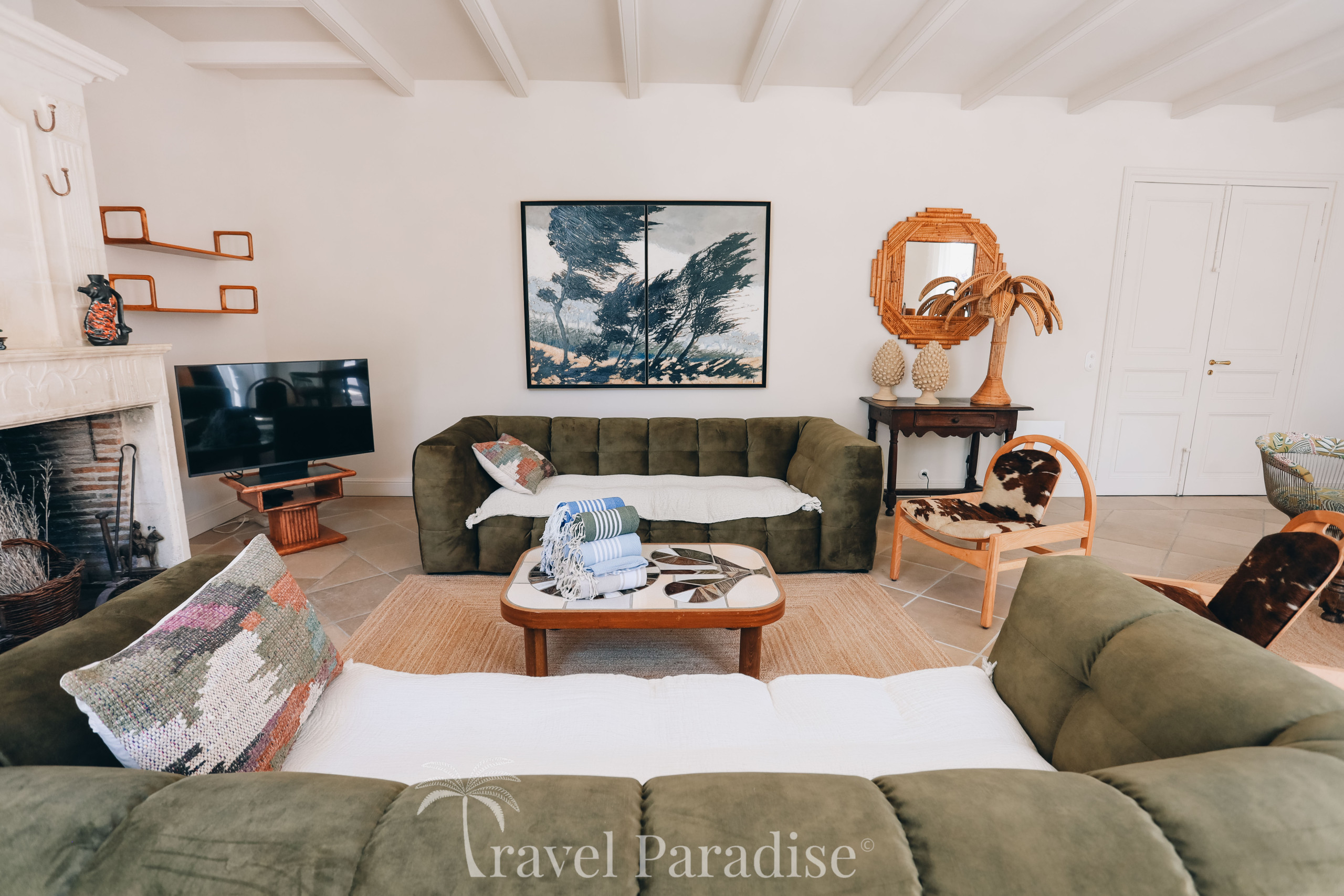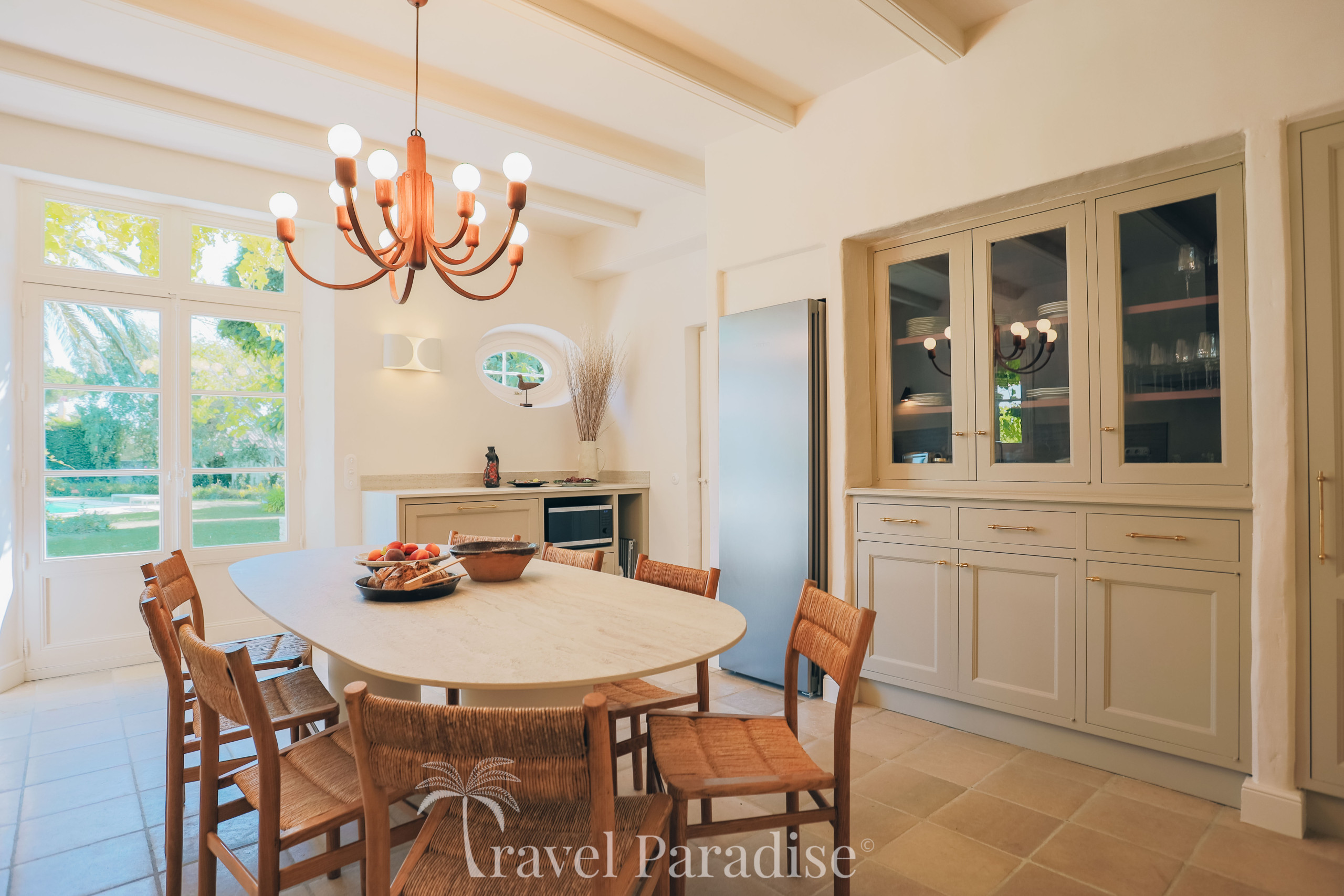 La villa s’ouvre sur un vaste jardin arboré, véritable écrin de verdure propice à la détente et aux instants de convivialité. À l’intérieur, vous découvrirez une décoration raffinée, ponctuée de pièces de mobilier design vintage qui confèrent à l’ensemble une atmosphère chaleureuse et unique.