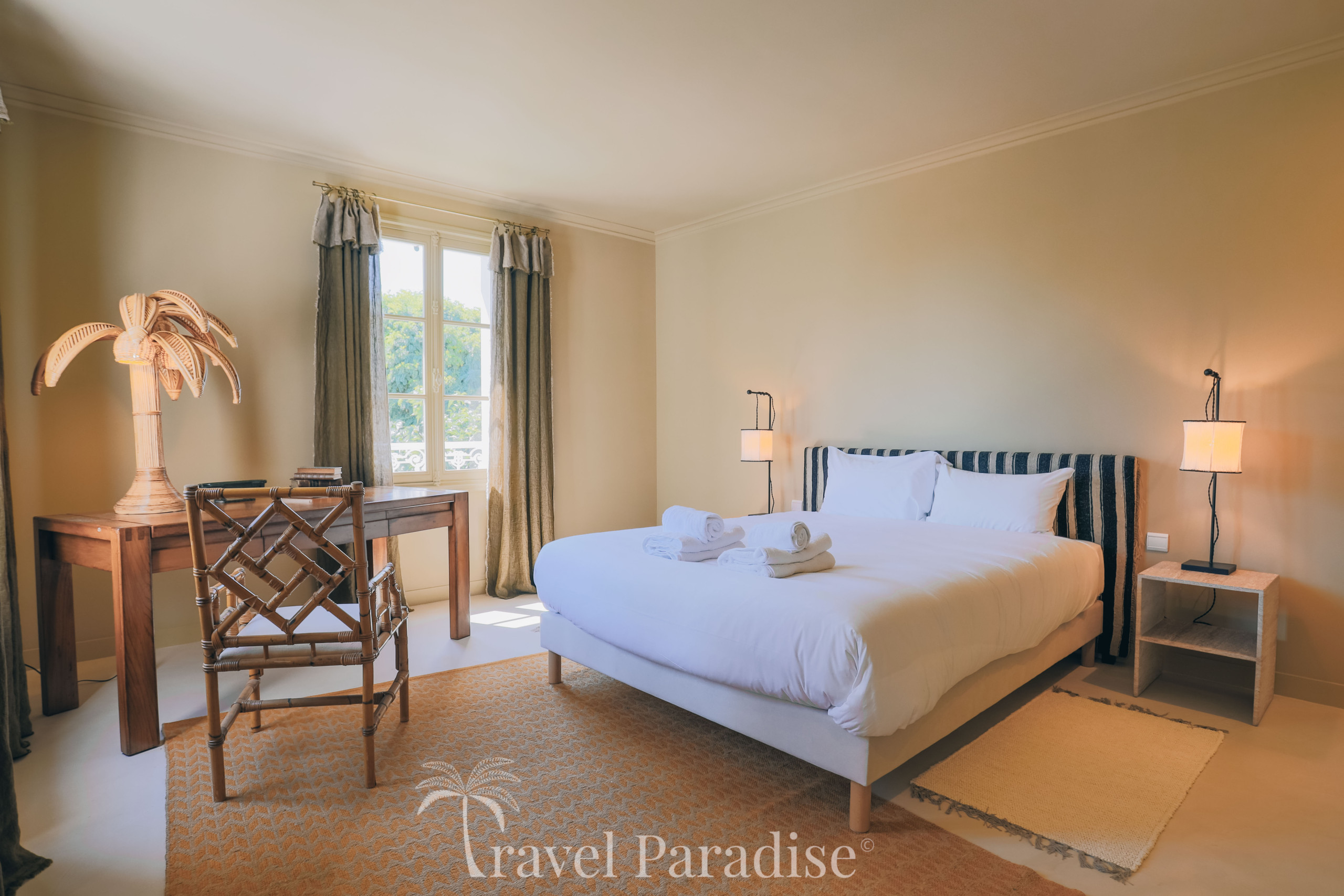 Le linge de maison est en option à 25 € / personne et comprend : linge de lit, Lits faits à l'arrivée, serviettes de bain, linge de cuisine et foutas pour la piscine.