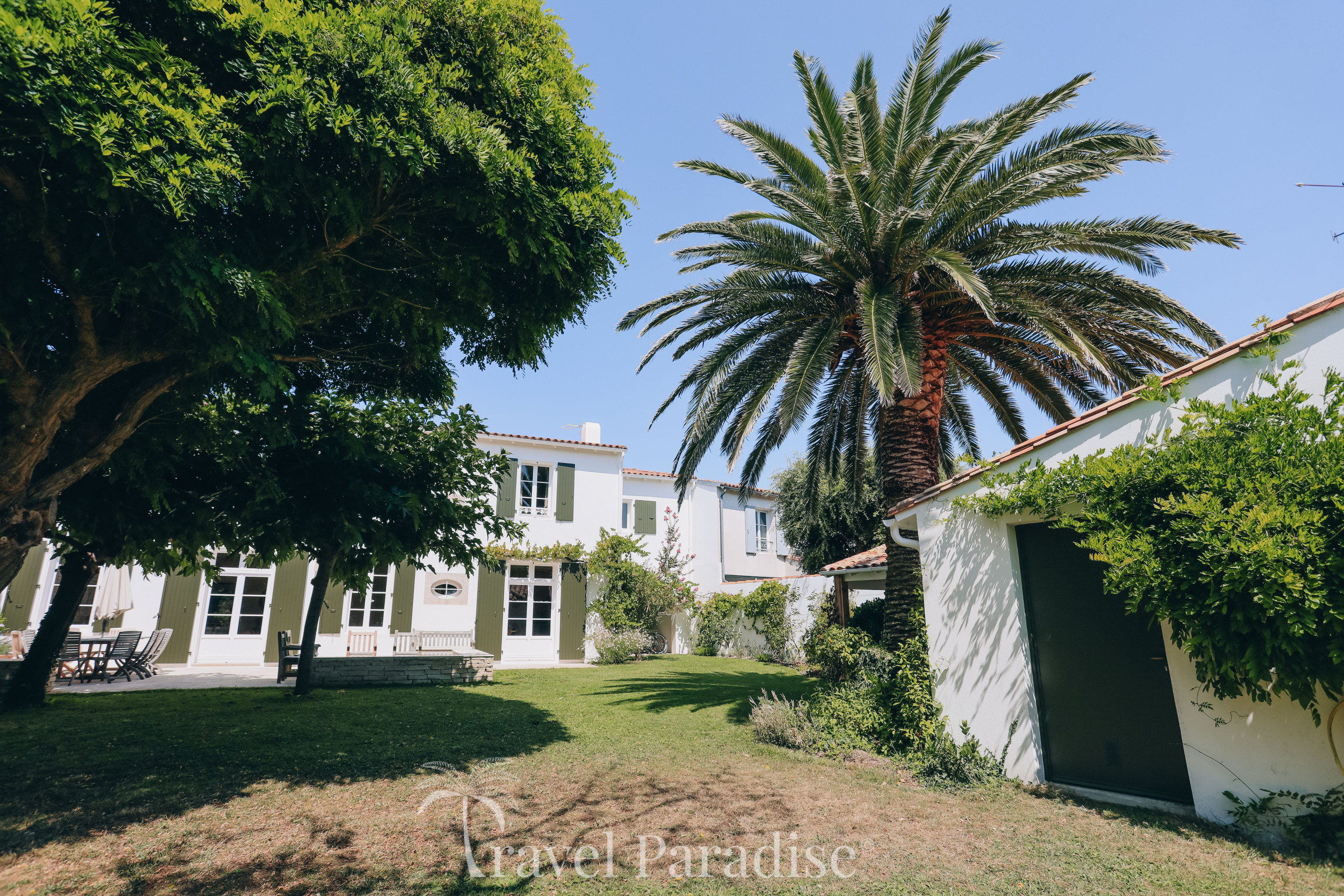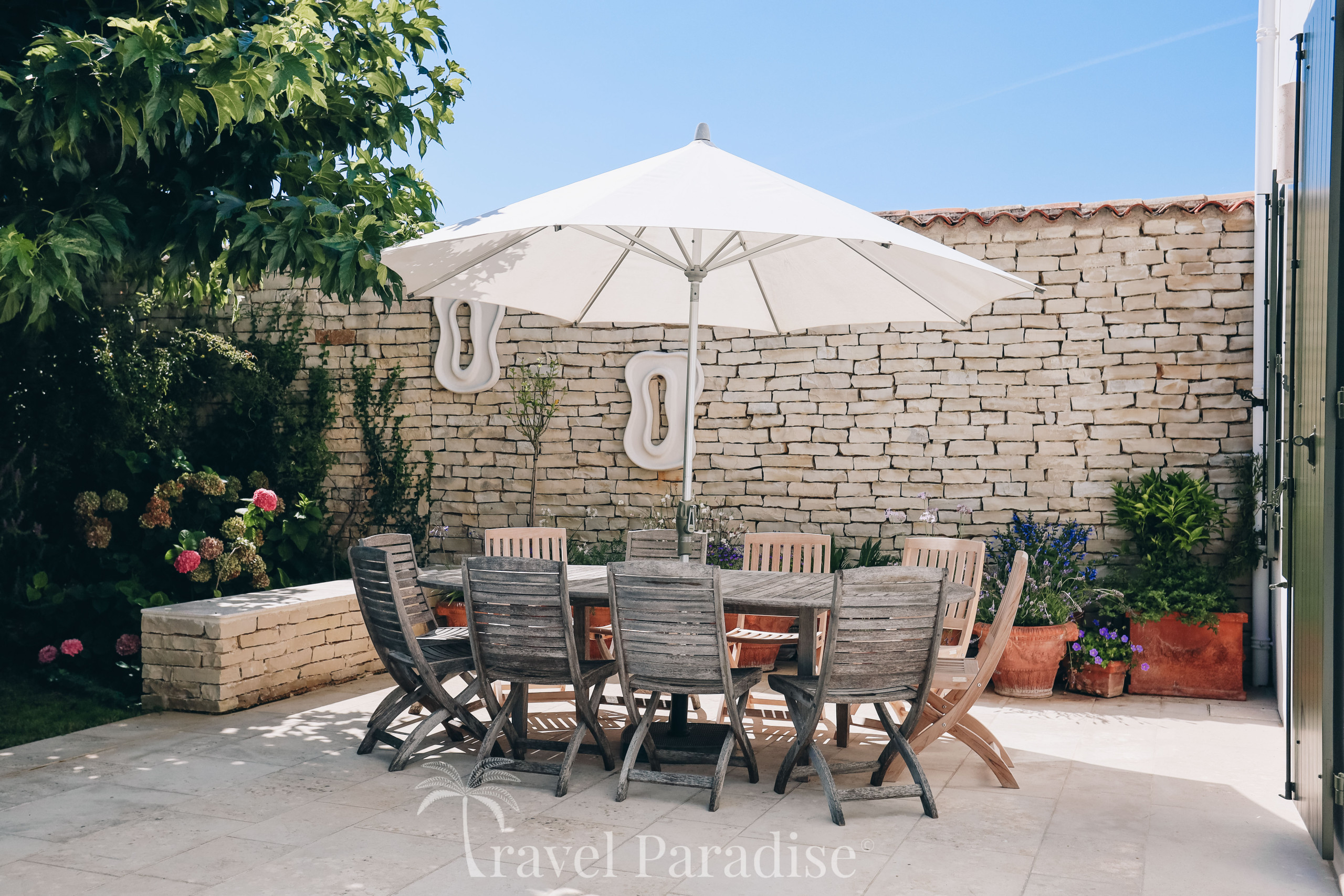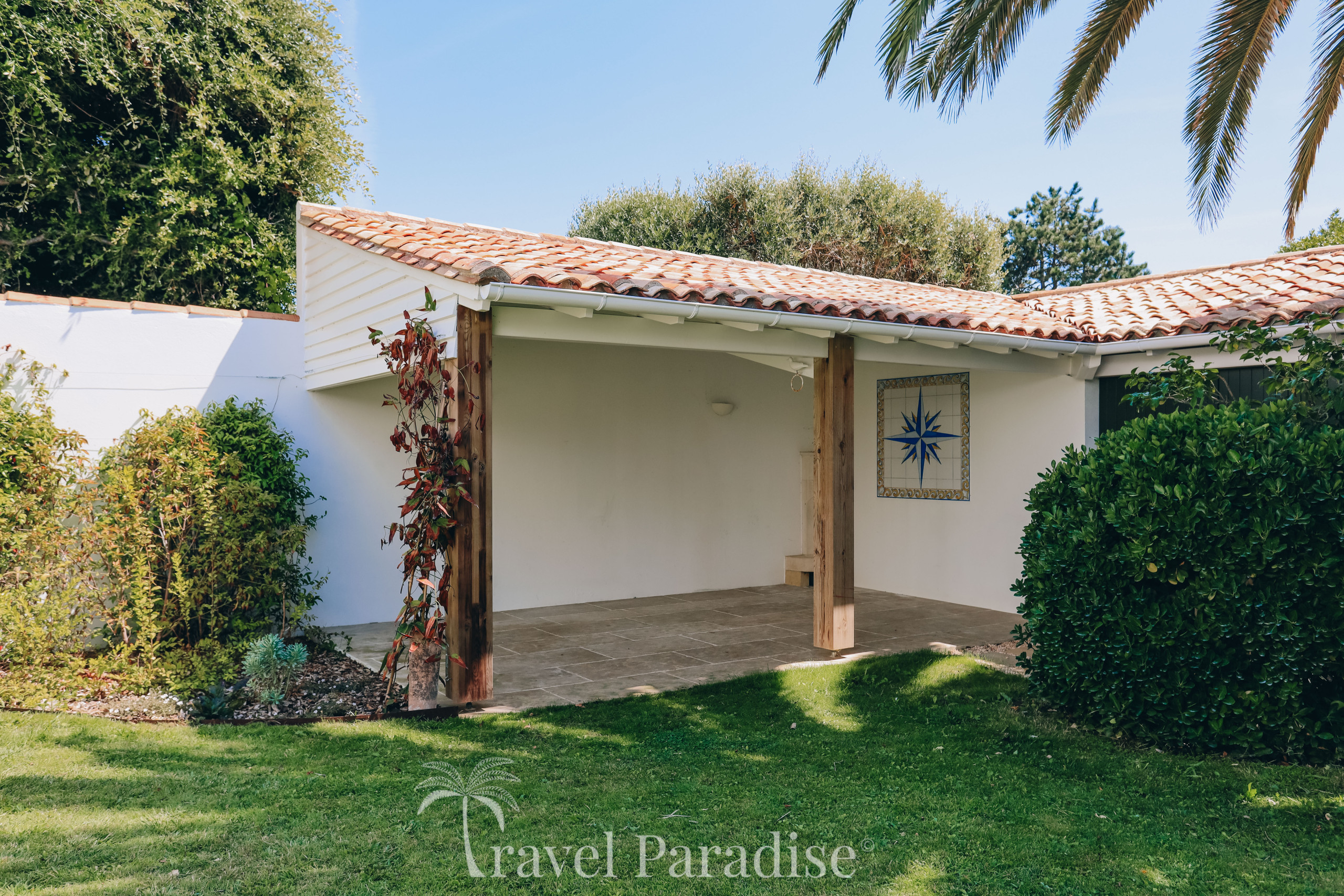 À l’extérieur, la villa a été pensée pour profiter pleinement de la douceur de vivre rétaise :