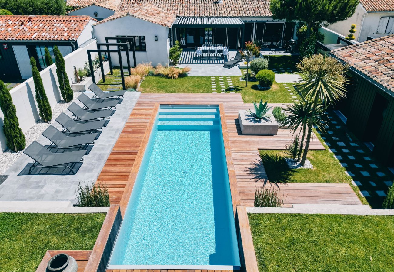 Villa Dune, située sur l'île de Ré à seulement quelques mètres de la plage du Pas des Sauzes au Bois Plage en Ré, vous comblera pour une location de luxe avec son design modern, sa piscine chauffée et sa climatisation dans toutes les chambres. Imprégnée de la magie de l'Île, cette demeure vous invite à vivre des vacances exceptionnelles dans le village du Bois Plage en Ré, un cocon de charme et familial.